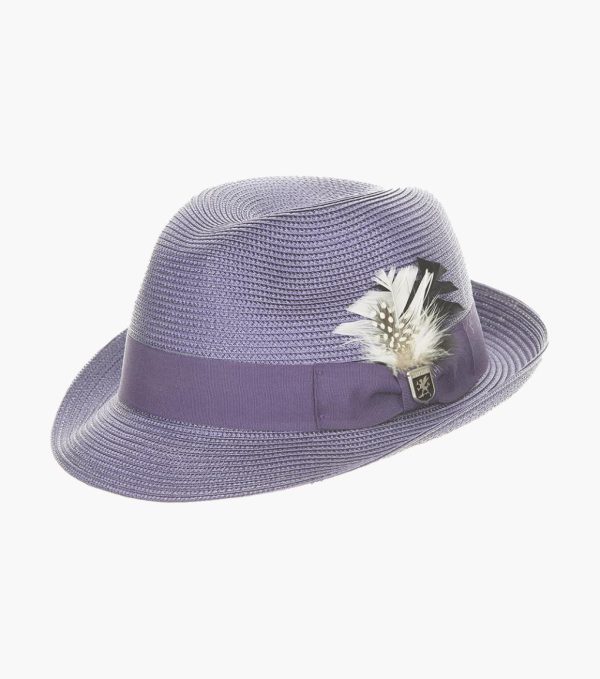 Effortless elegance is the best way to describe this poly braid fedora. The tone on tone grosgrain band is offset by a subtle feather and side pin detail, making it a hat that is understated but never overlooked.