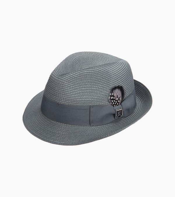 Effortless elegance is the best way to describe this poly braid fedora. The tone on tone grosgrain band is offset by a subtle feather and side pin detail, making it a hat that is understated but never overlooked.