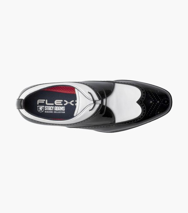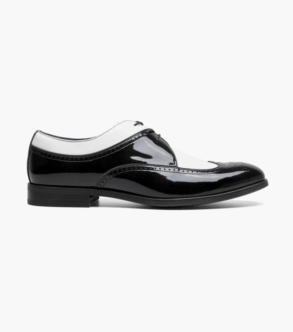 The Stacy Adams Dayton II Wingtip Oxford brings you classic spectator shoe style in stark black and white contrast patent leather. A shoe that will leave no head unturned, wear it to a wedding or anytime you want to make an occasion special.