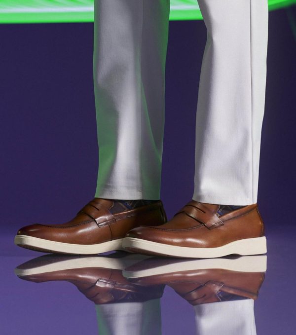 The classic loafer style of the Stacy Adams Spencer Moc Toe Penny Slip On is updated with a modern, contrasting sole for a cool, contemporary style. Perfect for work or a night out, this shoe will be a versatile addition to any collection.