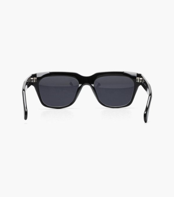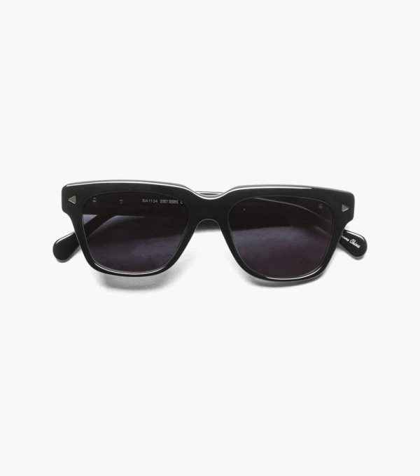 These sunglasses have a cool retro style highlighted by a laser-engraved inlay adorning the temple and a triangular inlay on the front of the frame.